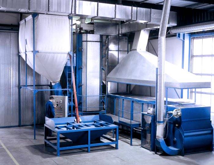 Durante il processo di produzione, i granuli di polistirolo vengono espansi in condizioni di alta pressione e temperatura. L'anidride carbonica e il freon leggero agiscono da catalizzatore per il processo. La massa finita, simile alla panna montata con un miscelatore, viene espulsa attraverso speciali ugelli dell'unità di estrusione. Qui il freon evapora e i vuoti risultanti vengono riempiti d'aria.