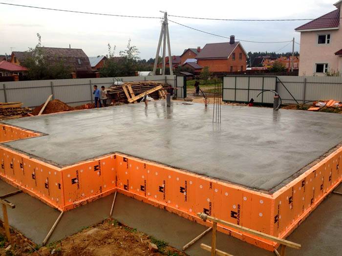 - Fondazionein grado di sopportare carichi significativi durante il funzionamento. Lo spessore minimo del pannello è di 50 mm. Se necessario, è possibile ordinare un isolante termico più spesso se l'operazione dell'edificio verrà eseguita nelle regioni settentrionali;