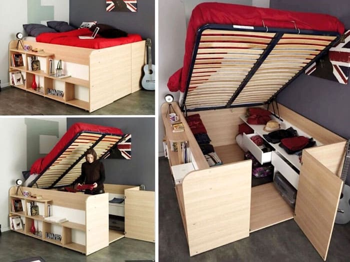 - solo il posto letto si alza per formare un volume utile con rapido accesso allo spazio di archiviazione per un'ampia varietà di cose.