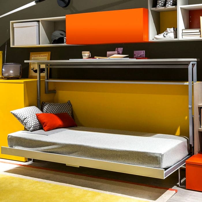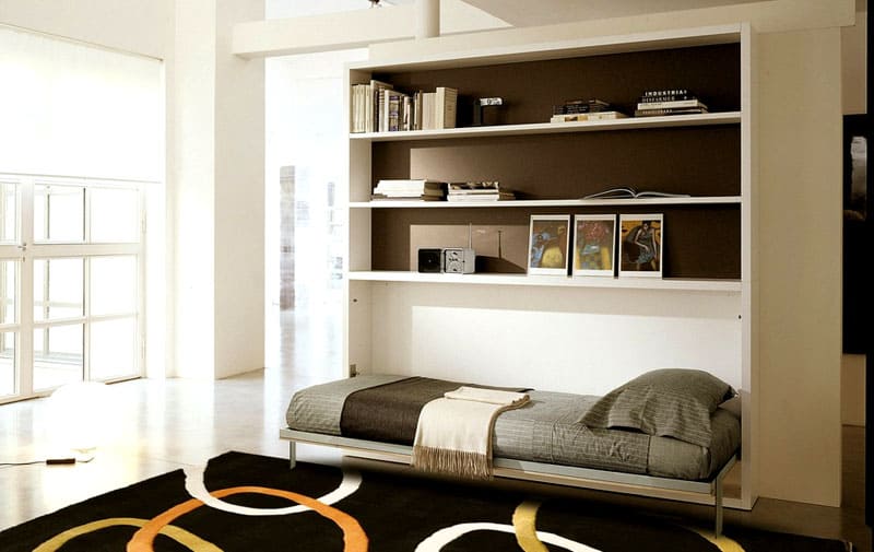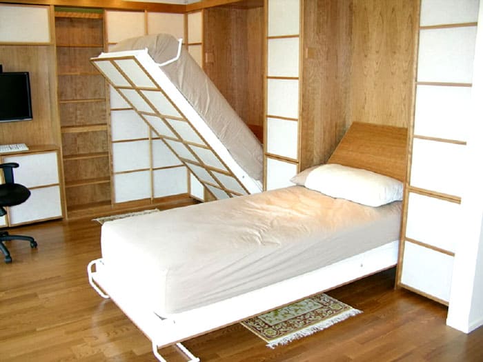 - il letto stesso viene trasferito in posizione verticale e retratto in una nicchia nel muro;
