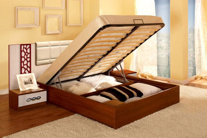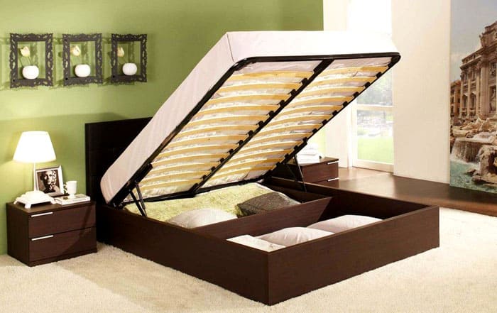 - la posizione del letto rispetto ad altri mobili nella stanza. Il metodo di sollevamento dipende da questo: ad angolo o orizzontale;