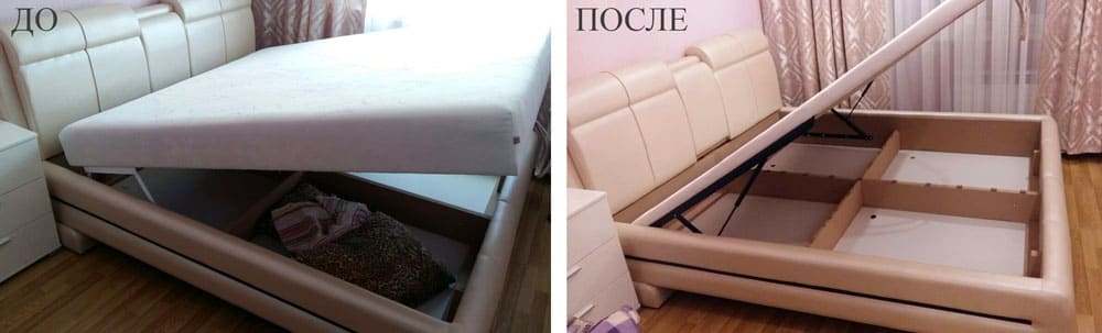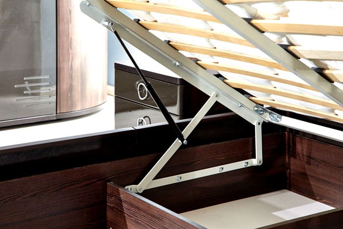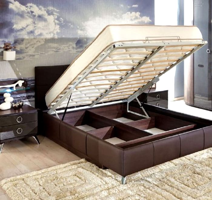 - facilità d'uso. I moderni meccanismi di sollevamento sono dotati di vari accorgimenti che consentono di sollevare facilmente il rivestimento superiore, nonostante il peso significativo della struttura e del materasso.