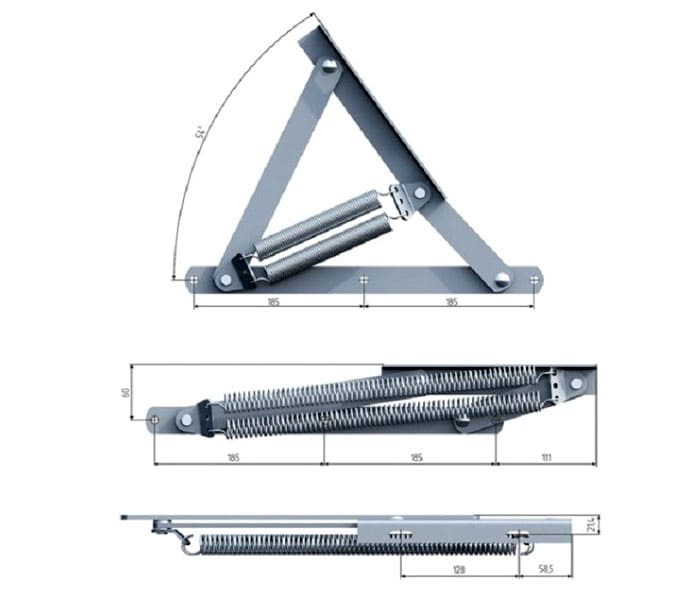 - Energia... Quando si calcola la potenza delle molle o del gas lift del meccanismo di sollevamento, è necessario rispettare la regola: per 1 kg del peso della struttura da spostare, è necessario spendere 10 N. L'uso di molle più potenti o ammortizzatori a gas non è pratico, poiché il loro funzionamento sarà piuttosto difficile.