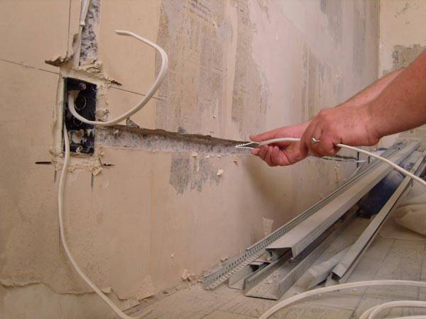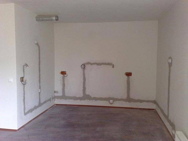 È la prima opzione più spesso utilizzata per gli appartamenti, tutti i fili sono nascosti sotto uno strato cerotti in scanalature speciali. Per fare questo, devi scanalare i muri.