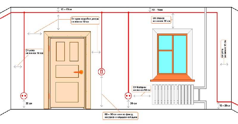 Sul diagramma è necessario indicare i punti di distribuzione. Esistono tre tipi di instradamento dei cavi: parallelo, in serie e misto. È l'ultima opzione più razionale da utilizzare: è più economica di tutte le altre in termini di costi dei materiali ed è anche la più efficace. Per facilitare la posa, ecco un piano approssimativo per abbattere i punti di connessione: