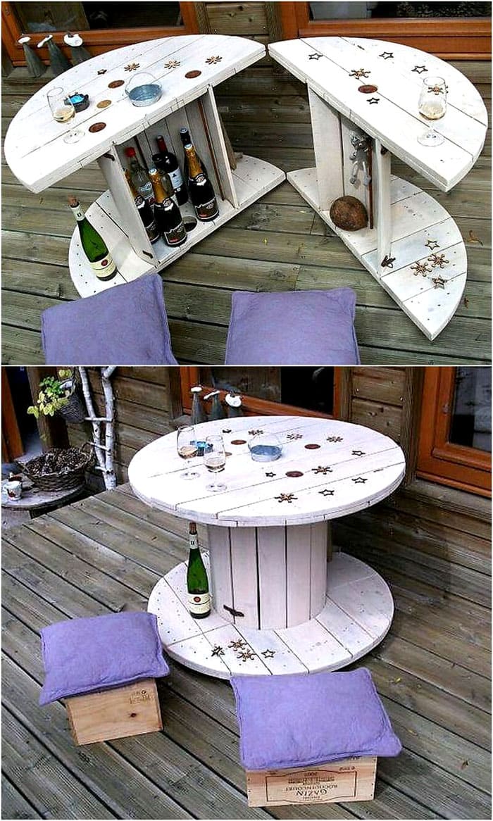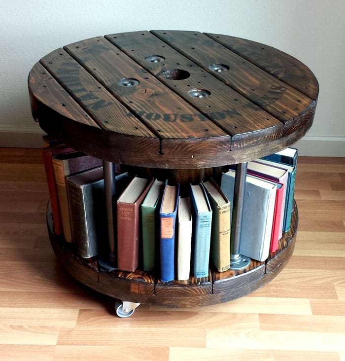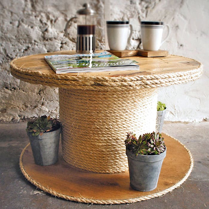 Per coloro che utilizzano completamente lo spazio dell'appartamento e amano le cose multifunzionali, un pouf ricavato da una bobina può essere un'opzione ideale.