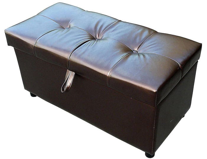 Molto spesso, i pouf nel corridoio hanno un dispositivo speciale a forma di "lingua" per aprire rapidamente il coperchio e nascondere qualcosa sulla sedia