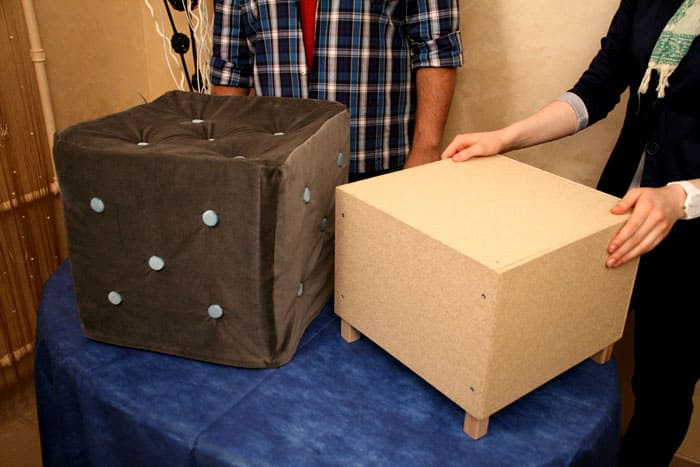 La versione più comune e classica in Europa è un pouf quadrato, rivestito con materiale morbido. Per la base, puoi scegliere una scatola normale o una scatola di legno spessa.