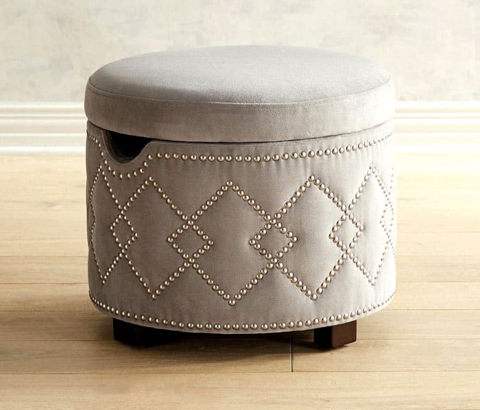 Un'opzione alternativa, che può essere realizzata anche in casa, è un pouf multifunzionale con coperchio a cerniera, sotto il quale vengono riposte le scarpe o altre cose
