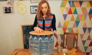 Se la casa ha una bottiglia d'acqua vuota di grande volume, puoi ricavarne un pouf molto affidabile e durevole, che resisterà non solo a un bambino, ma anche a un adulto.