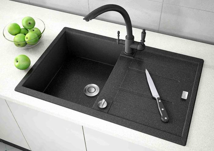 - Il lavello nero per la cucina sta benissimo su uno sfondo bianco