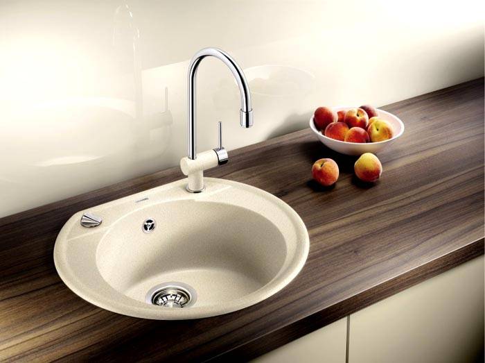 Nota! I lavelli rotondi o ovali sono comuni nelle cucine moderne. Stanno benissimo alle estremità degli angoli. Tali opzioni sono più spaziose delle controparti quadrate.