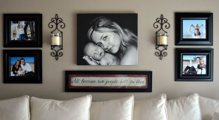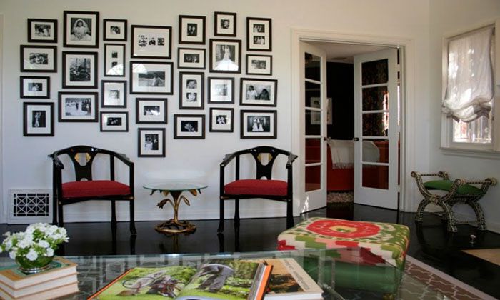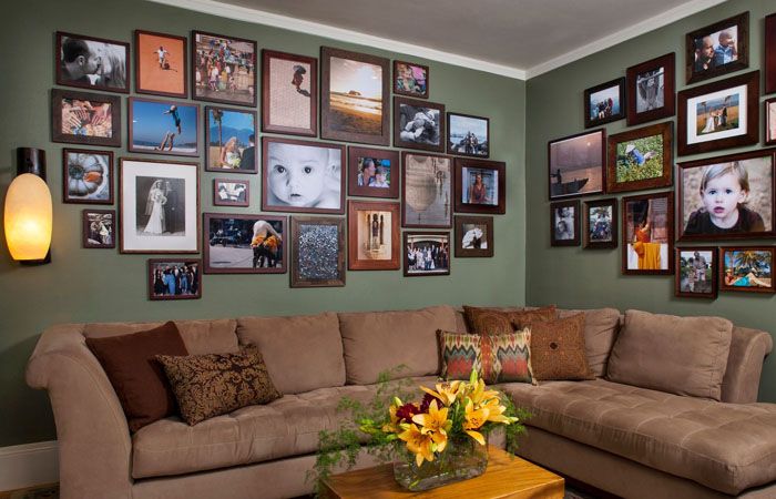 Se hai intenzione di posizionare il tuo collage sul muro soggiorno, scegline uno che non abbia mobili di grandi dimensioni. Divano o tavolo non ti permetterà di avvicinarti ed esaminare in dettaglio piccole immagini.