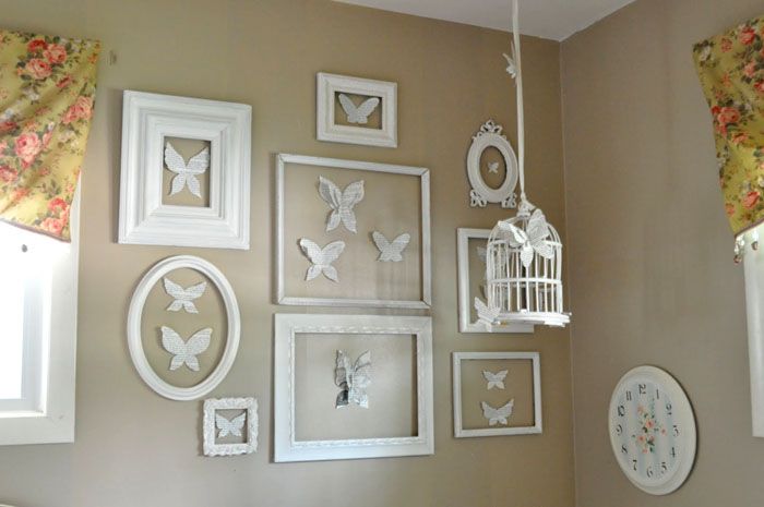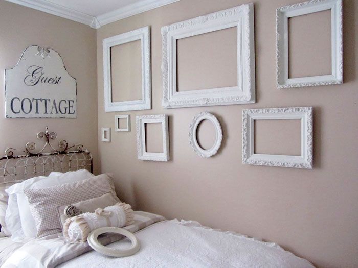Questa idea non è nuova. E, francamente, non è adatta a tutti. Le cornici vuote danno una sensazione di incompletezza, non a tutti piacerà vedere cornici senza contenuto ogni giorno. Ma come tecnica di decorazione originale, questa opzione ha diritto alla vita. Ecco come appare:
