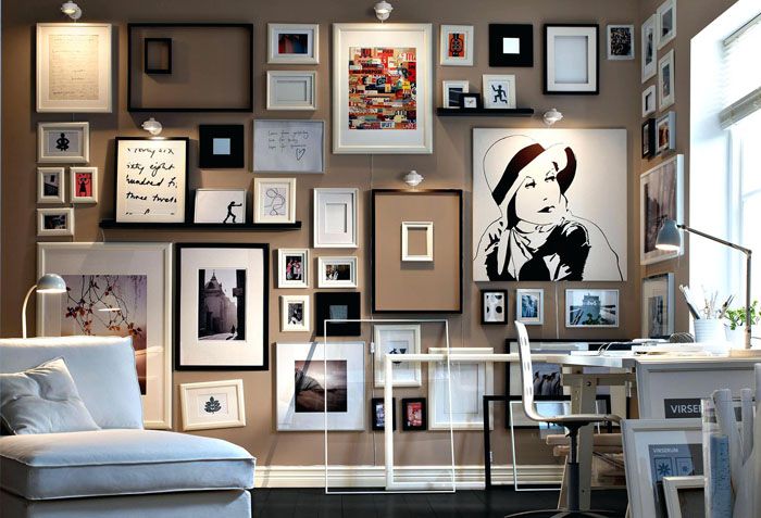 Idealmente, si trovano di fronte agli occhi, in modo che per studiare la foto, puoi solo girare leggermente la testa in alto o in basso. Questa è la linea di mezzo nella galleria fotografica. I progettisti consigliano di posizionarlo ad un'altezza di 152 centimetri dal pavimento.