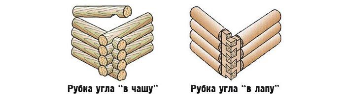 Schema dell'abbattimento dei tronchi e dei carrelli delle armi durante la costruzione di una casa privata in legno