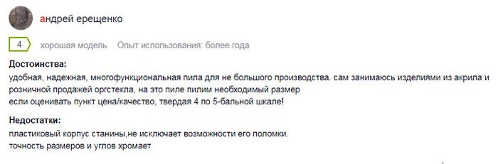 - opzioni aggiuntive: avviamento dolce del motore elettrico e sistema di rimozione della segatura, sistemi di protezione e automazione (da surriscaldamento, inceppamenti, ecc.), nonché misurazione di righelli e angoli di vario tipo.