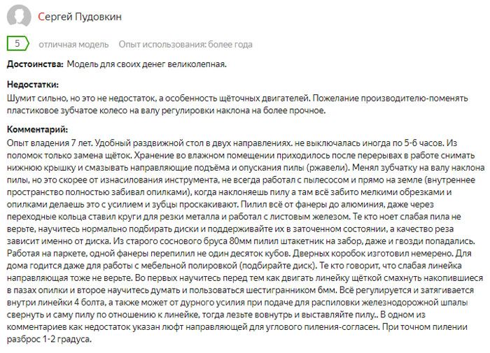 Nota! Una caratteristica distintiva di una sega circolare fissa è una potenza elettrica significativa e una grande profondità di taglio.