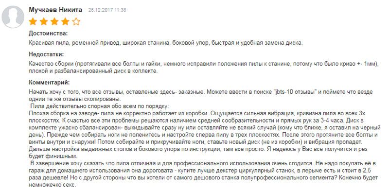 ![]() | "JET JBTS-10" | Potenza - 1,7 kW; Diametro della lama della sega - 254 mm; Peso - 35 kg. |