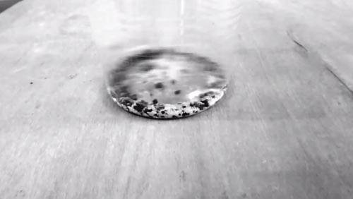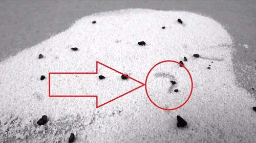 Dopo aver terminato il trattamento e la solidificazione della soluzione, le depressioni posizionate in modo caotico rimangono sulla superficie, formando uno schema complesso.