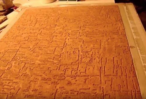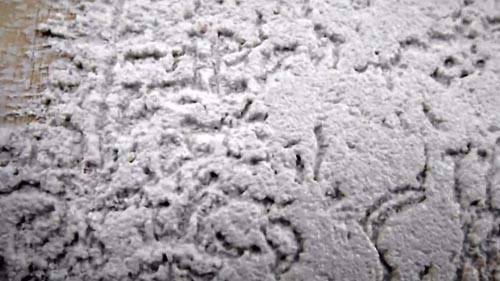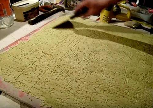 Per ottenere il risultato desiderato, utilizzare additivi speciali nella soluzione di gesso, frazioni relativamente grandi. Quando si applica la miscela spatola alla superficie - si formano scanalature. Il loro spessore e profondità sono determinati dalla dimensione delle particelle di riempitivo. Aumentando e diminuendo la sua quantità per unità di volume, è possibile regolare in modo appropriato la densità della linea del motivo.