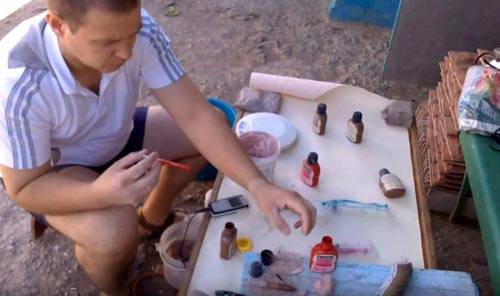 Le istruzioni sopra spiegano come dipingere lo scarabeo della corteccia in due colori. Il video seguente mostra chiaramente le regole per eseguire le operazioni quando si lavora con una base di componenti in silicone: