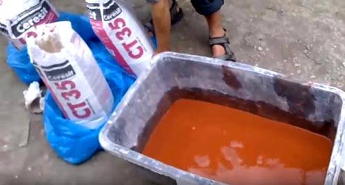 Tecnologia di intonacatura dello scarabeo di corteccia: materiali fotografici e video, produzione di miscele da costruzione