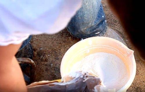 - La polvere viene versata in acqua a piccole dosi, mescolando continuamente. Ciò impedirà la formazione di grumi di grandi dimensioni.