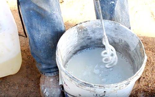 - Dopo il completamento del primo ciclo di miscelazione, la miscela viene lasciata riposare per un breve periodo e la procedura viene eseguita nuovamente. Un'eccezione è l'intonaco a base di silicone, che deve essere applicato il prima possibile.