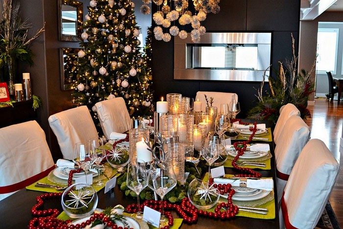 Hai visto le foto su Internet quanto sono interessanti le palle di Natale e le ghirlande intorno ai piatti? Quindi, la parola chiave è "guardare": utilizzare lo spazio per lo scopo previsto sarà almeno difficile. Se sicuramente vuoi impressionare tutti con un tavolo così favoloso, immagina di dover correre irrequieto attorno a questo tavolo e rimuovere gli elementi di interferenza. La bellezza nella foto e la realtà differiscono l'una dall'altra: non dimenticare che ci sediamo al tavolo non solo per ammirare la capacità dei proprietari di apparecchiare la tavola.