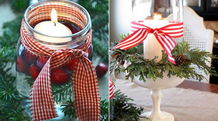 Spesso mettono semplicemente una normale candela bianca in un barattolo o un bicchiere, che è decorato con nastri o altri materiali.