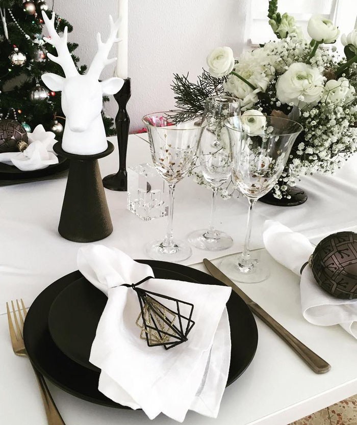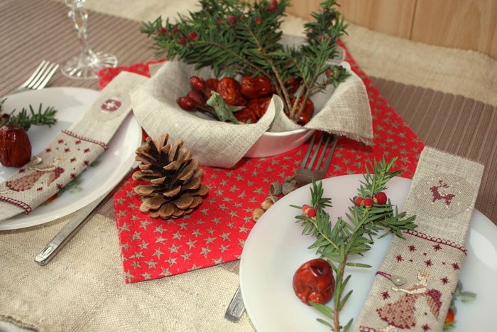 E come decorare la tavola con i tovaglioli se non vuoi il contrasto? Il bianco è un colore universale e la combinazione di tovaglioli bianchi e tovaglia bianca non deformerà nessuno, al contrario: puoi decorare la tavola con i veri colori invernali