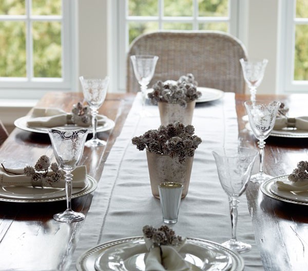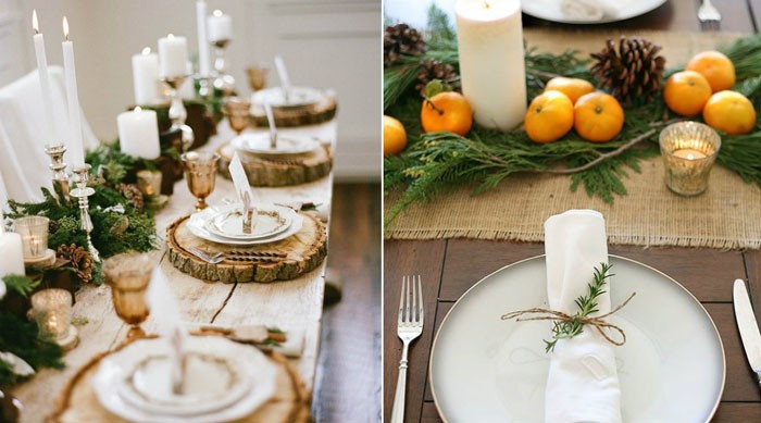 Tessuti di lino, ramoscelli secchi di piante o una composizione di conifere stanno benissimo insieme