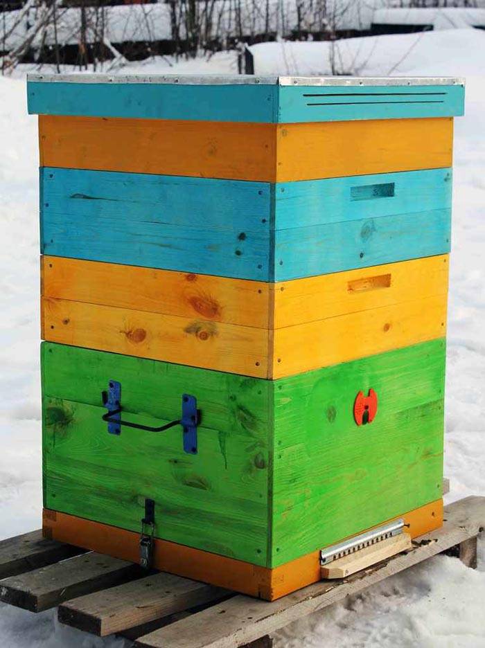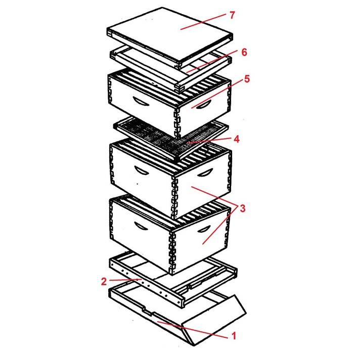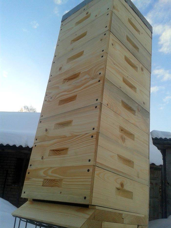 Nota! Gli apicoltori professionisti creano arnie di questo tipo fino a 7-8 piani. Con il loro aiuto raccolgono oltre 200 kg di miele in favi in una stagione.