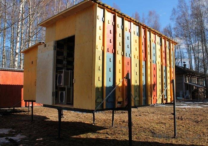 In una tale struttura le api vengono allevate tutto l'anno senza movimenti stagionali. Ma con l'attrezzatura adeguata è possibile la trasformazione in una versione mobile.