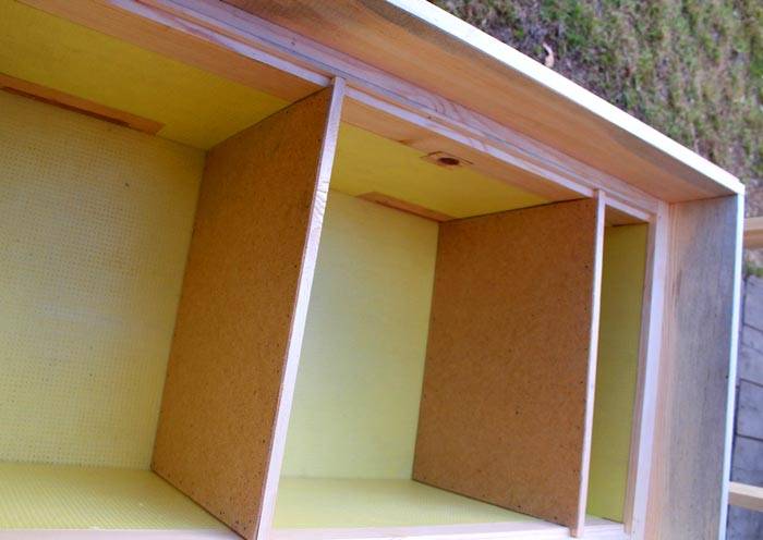 Nota! Al posto del compensato, vengono utilizzati schiuma di poliuretano, truciolato e altri materiali che soddisfano i requisiti di cui sopra per le parti dell'alveare.