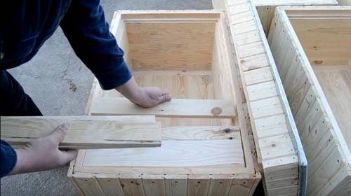 I disegni fai-da-te di un alveare cornuto spiegano la caratteristica principale: la presenza di spilli in blocchi separati.