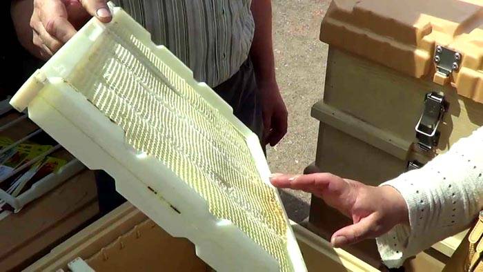 - Non è difficile per le api riempire telai compatti con favi, quindi non sono installati supporti aggiuntivi (corde di metallo, fili di plastica).