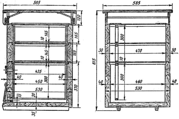 Nota! Ci sono vari disegni di alveari su Internet, quindi non è difficile trovare un'opzione adatta. Ma va sottolineato che i professionisti e gli esperti esperti preferiscono le strutture pieghevoli. Tali strutture sono più convenienti da utilizzare. In particolare, viene semplificata la riparazione dei singoli componenti.