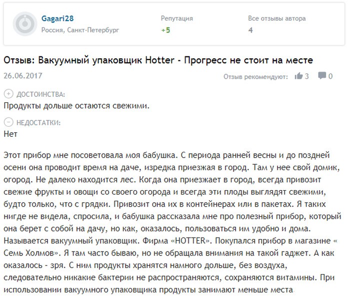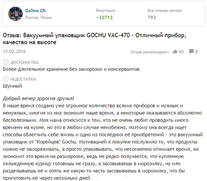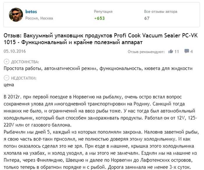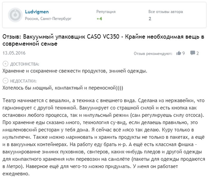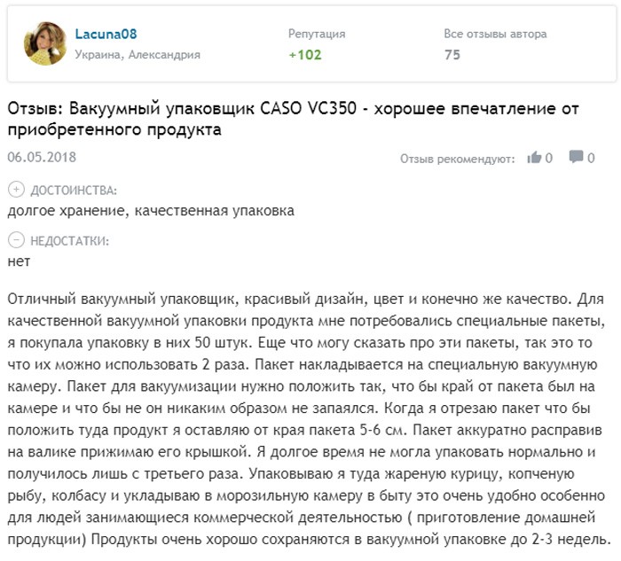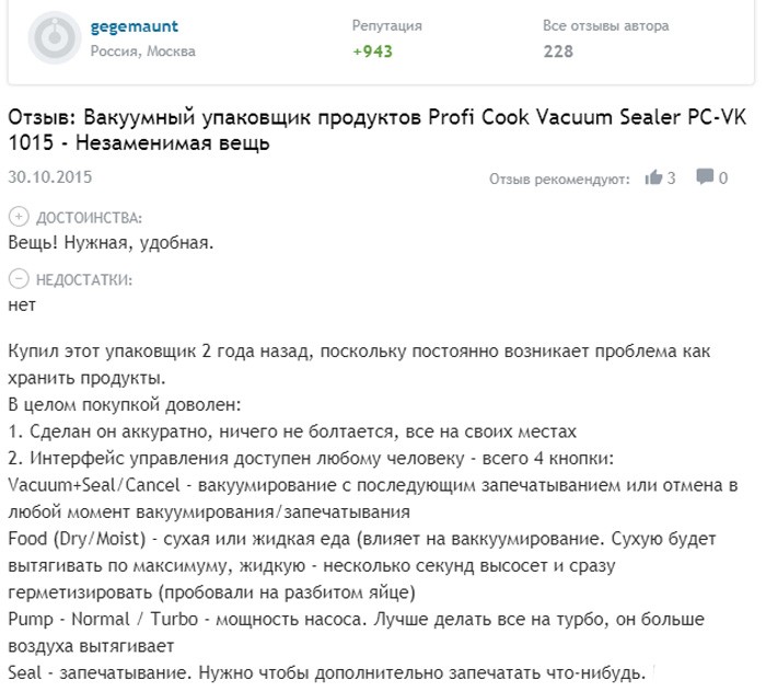 Un'altra recensione della macchina per sottovuoto Profi Cook PC-VK 1015: