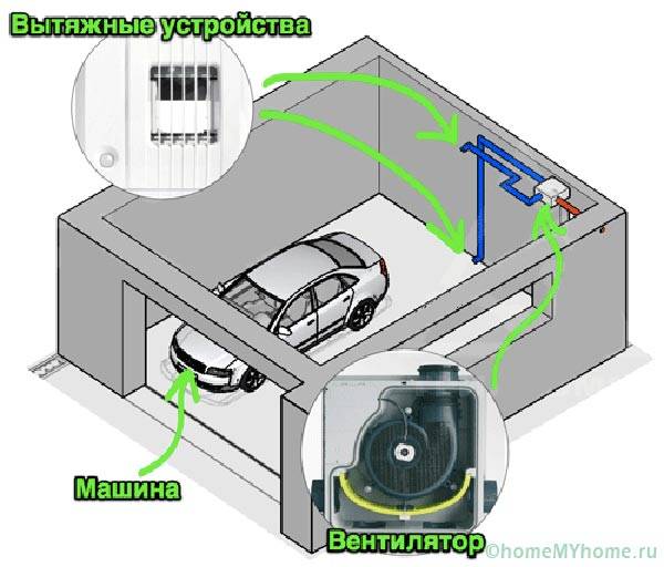 Utile informazione! L'aria contiene vapori di benzina, combustibili e lubrificanti, possono penetrare gli odori della cantina. A differenza di un'abitazione, un sistema di ventilazione del garage è tecnicamente molto più semplice.