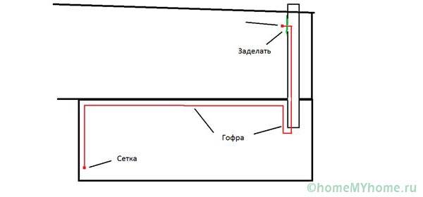 - l'ingresso può essere posizionato nel soffitto della cantina, la cappa può uscire attraverso il tetto o all'esterno lungo il muro del garage.