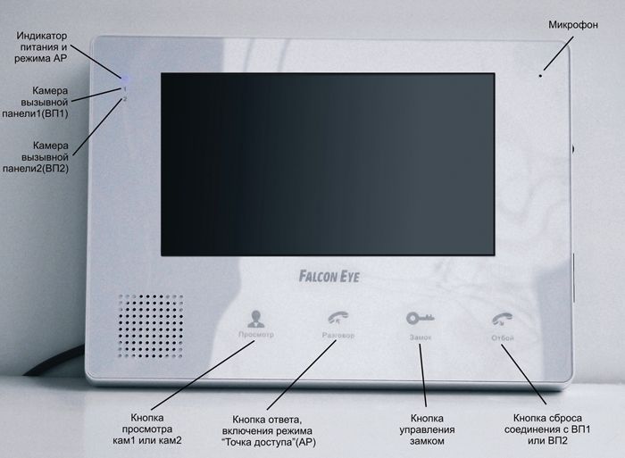 Elementi di controllo, indicazione e controllo del videocitofono per l'appartamento Falcon Eye FE-IP70M