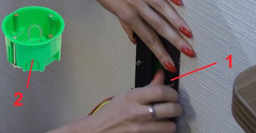 - Il blocco delle chiamate è fissato all'esterno porta d'ingresso (uno). Premendo il pulsante si attiva il campanello e si accende telecamera.