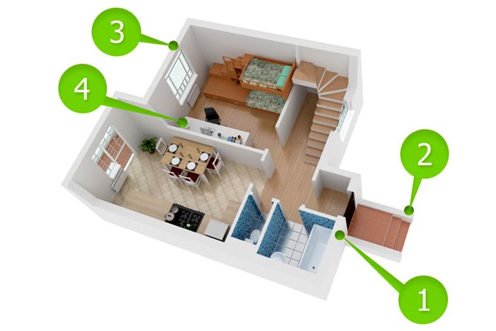 - Il quarto è installato per la registrazione video nel posto giusto dell'appartamento.