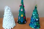 Обемисти коледни елхи за Нова година от хартия и картон, от хартиени туби, за пощенска картичка, дървена кутия от дебела хартия или картон - потърсете подробни майсторски класове в нашата публикация.