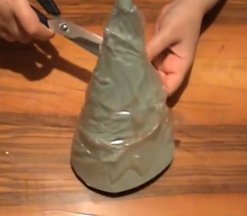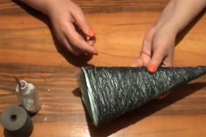Сега обвиваме ствола на дървото с нишки няколко пъти, завързваме възел. Ние смазваме картона с лепило и започваме да увиваме конеца около детайла. Ние не сме скъперници - картонът не трябва да се вижда през нишките. Ако вземете две нишки с различни цветове наведнъж, получавате доста необикновени продукти. Когато целият детайл е правилно увит, конецът е пъхнат и фиксиран с лепило.