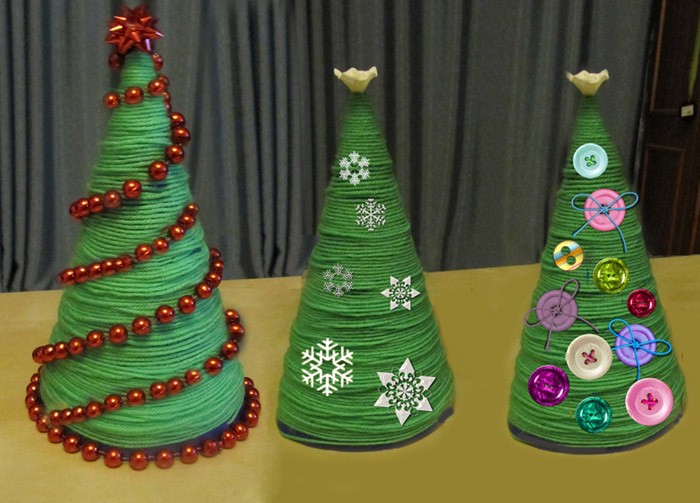 Майсторски клас: ние ще създадем със собствените си ръце обемно коледно дърво от нишки и лепило