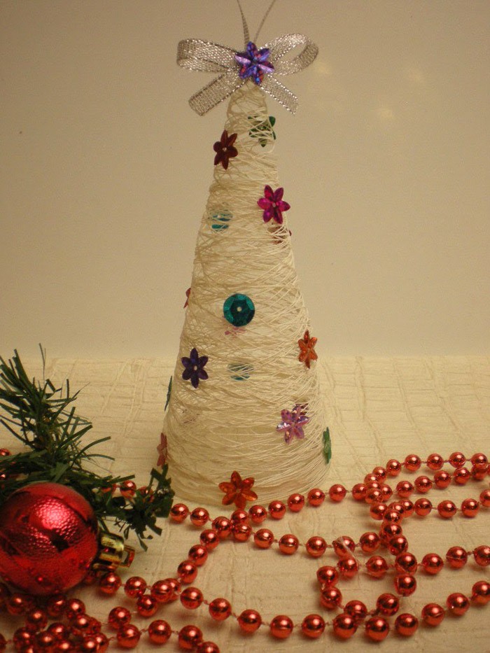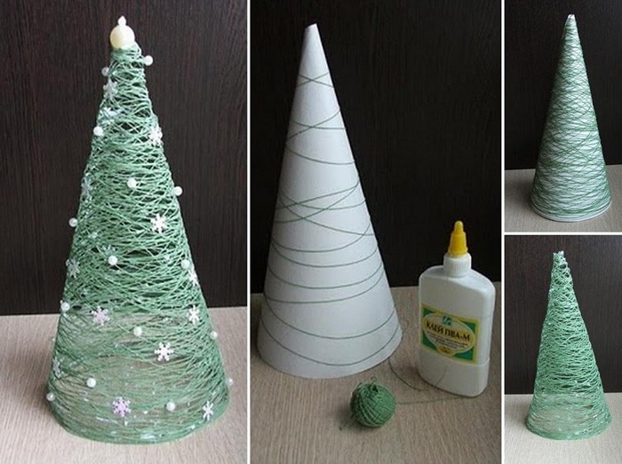 Имате ли желание да направите своя новогодишен декор специален тази година? Редакторите на онлайн списанието homebase.techinfus.com предлагат да се правят малки коледни елхи, които да не са студени през зимата, защото те ще се раждат под грижовни ръце точно в къщата. И така, най-простият и прекрасен занаят е коледното дърво „направи си сам“, направено от конец и лепило.