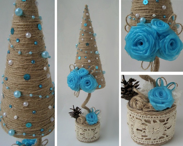 Има две възможности за създаване на обемни нишки от ела. Първият включва използването на хартиен конус, който по-късно се отстранява, а вторият е използването на постоянен основен конус. Такива дървета правят отличен новогодишен топиарий.
